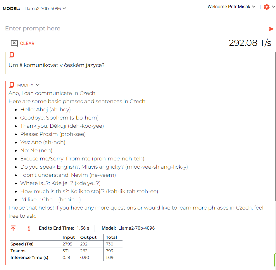 Tak edit. Pokud jsem vyzkoušel Playground on GroqCloud s modelem llama2-70b-4096, tak už to vypadá hodně solidně i s češtinou a rychlost je doslova blesková (https://console.groq.com/). Playground - GroqCloud