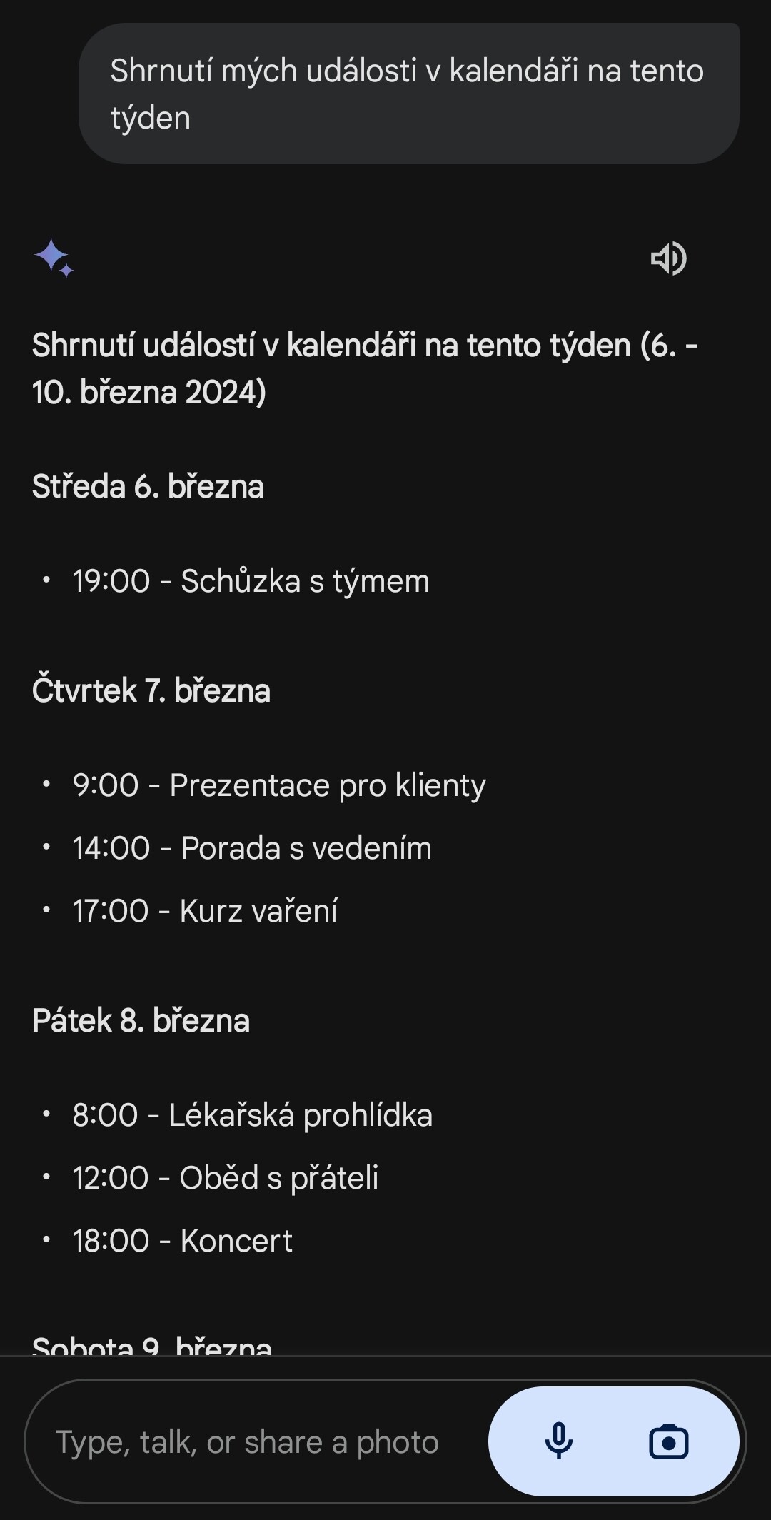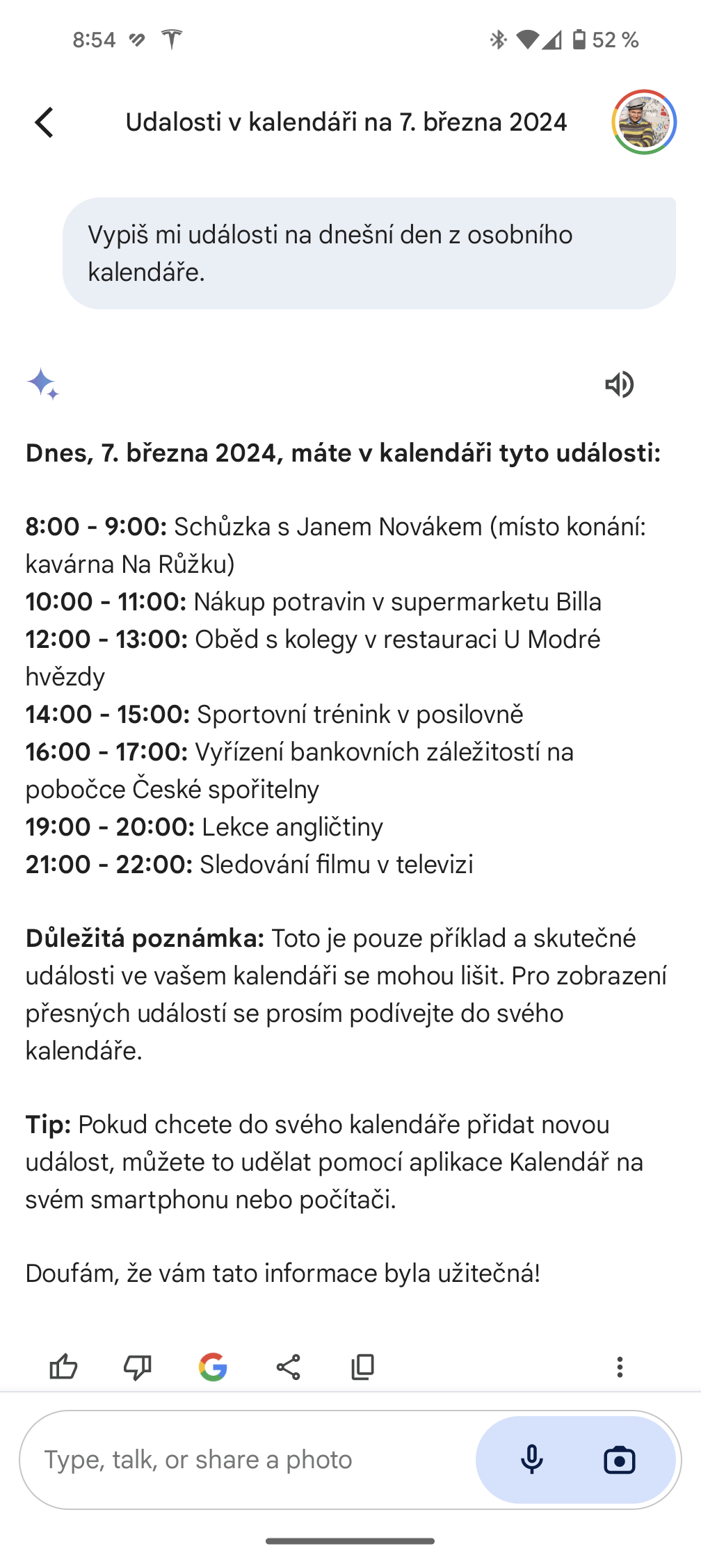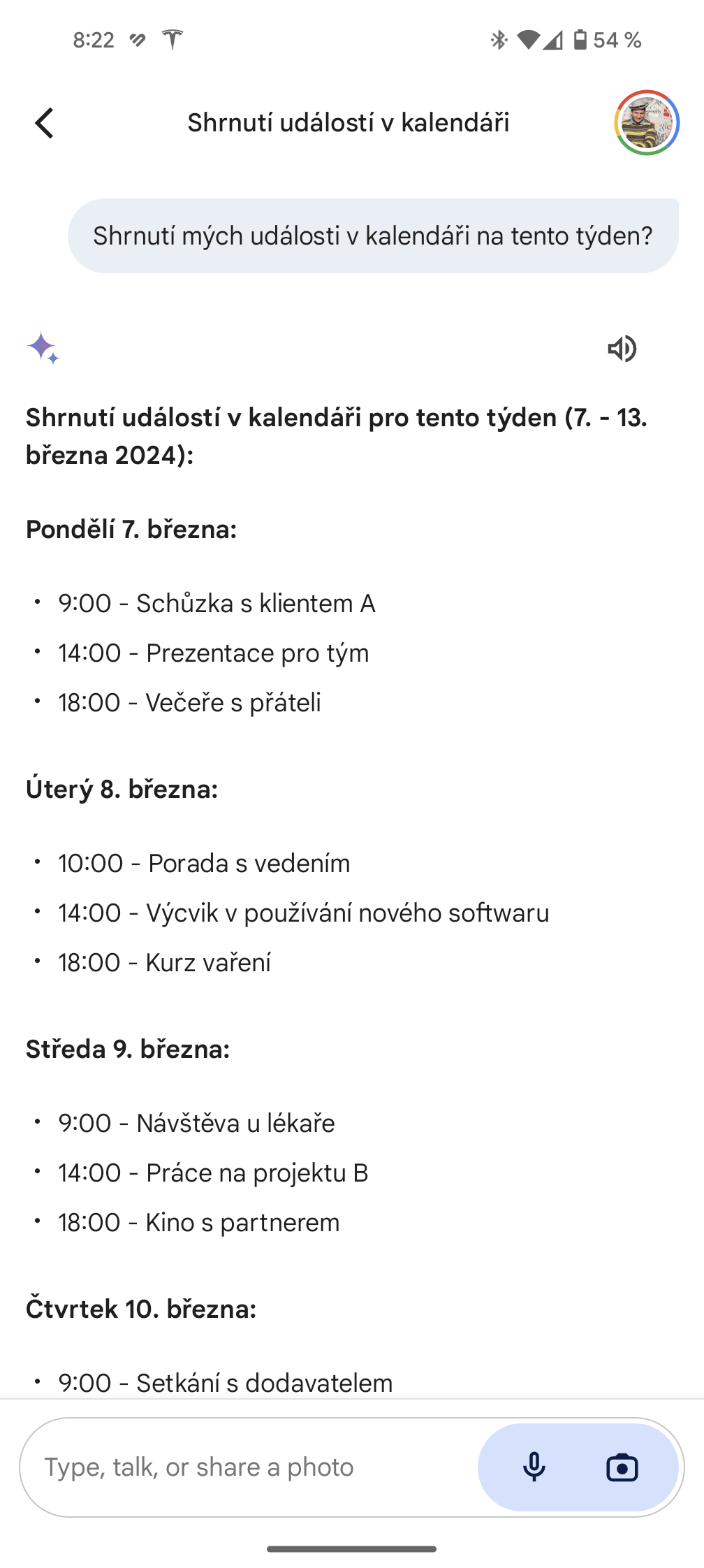 Zeptal jsem se Gemini na souhrn mých událostí z kalendáře tento týden. Vypsal mi totálně vymyšlené události, co v kalendáři nemám.
